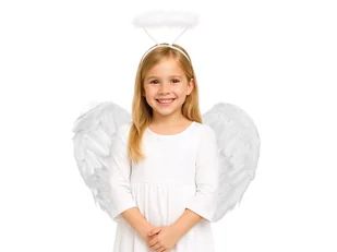 Białe skrzydła anioła. Wykonane w 100% z naturalnych piór. Łatwe w założeniu, skrzydełka posiadają gumki mocujące, za pomocą których łatwo znajdą się na właściwym miejscu. Idealne na Jasełka.