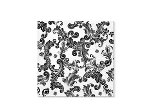 Serwetki w kolorze białym z czarnym wzorem. Wymiary: 33 cm x 33 cm (po rozłożeniu). Opakowanie: 20 szt.