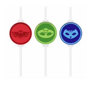 Świetne słomki z kolekcji PIDŻAMERSI - PJ MASK. Słomki zakończone ozdobnym medalionem z nadrukiem SYMBOLI jednego z PIDŻAMERSÓW. Słomki występują w trzech wariantach z różnym symbolem. Zestaw świetnie będzie pasował na urodziny dla małego fana pidżamersów.