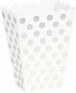 Pudełka na popcorn białe w srebrne kropki - 8 szt.