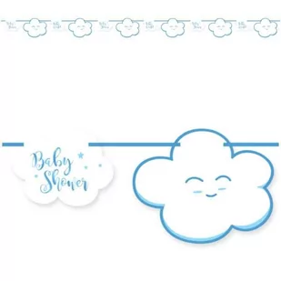 Baner "Girlanda" w odcieniach koloru błękitnego to bardzo oryginalny element dekoracyjny na Baby Shower. Baner na flagach posiada nadruk Chmurek oraz napis Hello World. Spraw by Twoja impreza wypadła na prawdę fenomenalnie! Uchwyć zdjęciami chwile, do których kiedyś powrócisz i mile będziesz wspominać nastrój przyjęcia.