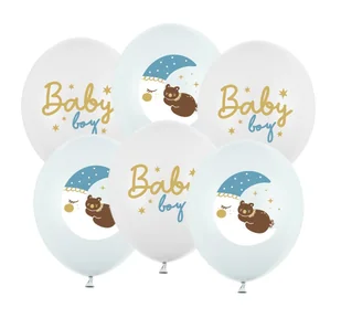 BALONY - Baby boy, niebieski - 6 sztuk Wysokiej jakości balony lateksowe z nadrukami. Zestaw zawiera 2 wzory: w kolorze Pastel Light Misty Blue dwustronnym n...