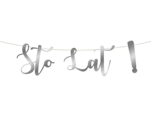Baner wykonany z papieru w kolorze złotym z napisem Sto Lat!, idealna dekoracja na urodziny.