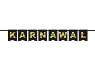 Baner flagi w kolorze czarnym ze złotymi metalizowanymi literami tworzącymi słowo Karnawał.