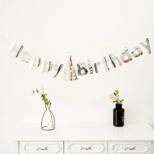 GIRLANDA BANER NA URODZINY DEKORACJA NAPIS SREBRNY METALICZNY URODZINOWA