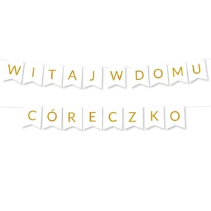 Girlanda WITAJ W DOMU Córeczko - złota Idealna dekoracja na powitanie w domu maluszka! Powieś ją nad łóżeczkiem dziecka, w oknie lub na ścianie - zarówno mam...