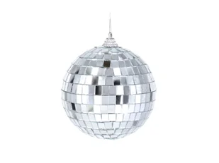 Kula dyskotekowa w kolorze srebrnym, idealna dekoracja na imprezę w stylu disco. Średnica: 10 cm. Opakowanie: 1 szt.