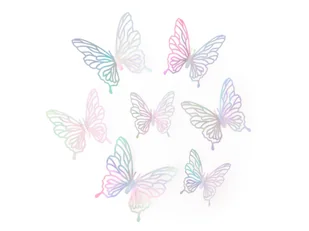Naklejki motylki ażurowe w kolorze holograficznym srebrnym.