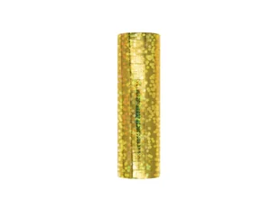 Serpentyna holograficzna brokatowa w kolorze złotym. Opakowanie: 18 pasków serpentyny o długości 3,8 m każdy.