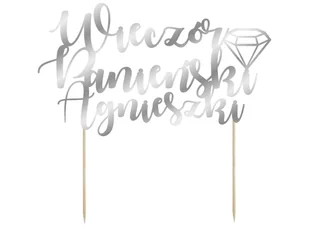 Napis Wieczór Panieński na piku, idealna dekoracja tortu na Wieczór Panieński. Napis wycięty w sztywnym, błyszczącym papierze. Zestaw DIY. Imię należy podać w notatce do zamówienia. Wielkość: dekoracja 20x12 cm, patyczek 11 cm.