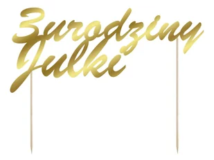 Topper z imieniem i cyfrą w kolorze złotym na pikach, idealna dekoracja tortu na urodziny. Dekoracja DIY.