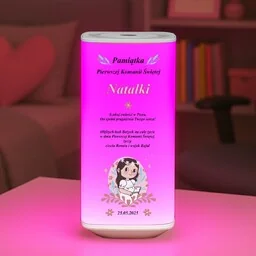 Lampka nocna led dla chrześniaczki na i komunię świętą Szukasz oryginalnego prezentu dla dziecka lub wyjątkowego dodatku do pokoju? Personalizowana lampka nocna LED z kolorowym nadrukiem to połączenie funkcjonalności i indywidualnego stylu. Dzięki personalizacji z imieniem lub wybranym motywem stanie się jedyną w swoim rodzaju ozdobą sypialni, bawialni czy dziecięcego kącika . Dotykowy pierścień pozwala płynnie zmieniać jasność , przełączanie między trybami kolorów i wybranie efektów świetlny dopasowany do nastroju. Lampka śweieci stałym światłem w jednym kolorze lub pulsuje i łagodne przechodzi między barwami. W zestawie jest też pilot , który pozwala wygodnie sterować lampką z odległości, ustawić timer i szybko zmieniać ustawienia.