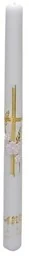 Świeca do Chrztu - różowy kwiatek Świeca na Chrzest ze złotymi zdobieniami i różowym kwiatuszkami oraz napisem okazjonalnym " Pamiątka Chrztu Świętego " Wysokość: 40 cm Średnica: 3 cm