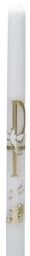 Świeca do Chrztu ze złotymi zdobieniami Świeca na Chrzest ze złotymi zdobieniami i okazjonalnym napisem " Pamiątka Chrztu Świętego " Wysokość: 40 cm Średnica: 3 cm