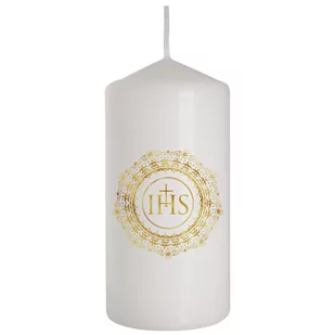 Świeca klubowa Komunijna Świeczka walec pieńkowa Złota Hostia Ornament IHS