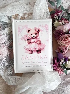 ALBUM MISIA Z KWIATAMI z metryczką, prezent na chrzest, roczek, narodziny