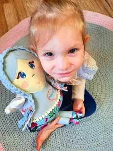 Anioł Stróż wykonany z bawełny i miękkiego velvetu w kolorze szarym. Ozdobiony aplikacją z imieniem dziecka i fragmentem modlitwy :) W środku antyalergiczna kulka silikonowa. Uwaga! Ostatnie zdjęcie jest pr ...