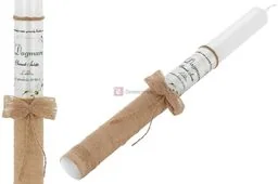 Świeca z imieniem i datą w ekologicznym stylu Idealna na Chrzest Święty lub I Komunię Świętą. Świeca udekorowana została wstążka jutową w wyjątkowym kolorze Ziemi oraz kokardą, co sprawia, że świeca jest wykonana z ekologicznych materiałów. To najlepszy sposób na ukłon w stronę środowiska, a także jak najbardziej efektywne wykorzystanie materiałów. Rękodzieło , które zasługuje na pochwałę, bo "Ziemia jest twoim okrętem, nie siedzibą" - Św. Augustyn Świeca jest gustowna i idealna na tak ważne święto małego chrześcijanina .
