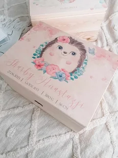 JEŻYK Kuferek wspomnień z metryczką, prezent na chrzest, roczek