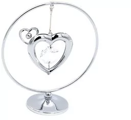 Posrebrzane serce w kółku z kryształem PREZENT CHRZEST
