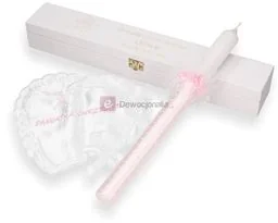 Zestaw na Chrzest Święty z spersonalizowanym pudełku Niezapomniana pamiątka z okazji Sakramentu Chrztu. Świeca ręcznie dekorowana z ozdobnym stroikiem oraz w komplecie z atłasową szatką. Nasze świece są zdobione z najwyższej jakości dodatków, produkt wysokiej klasy, dobrej jakości wosku, niekapiąca, nie kopcąca, polskiego producenta. W zestawie również drewniane pudełko z grawerowaną dedykacją to doskonała pamiątka. Materiał: drewno sosnowe, sklejka brzozowa, elementy metalowe Kolor: