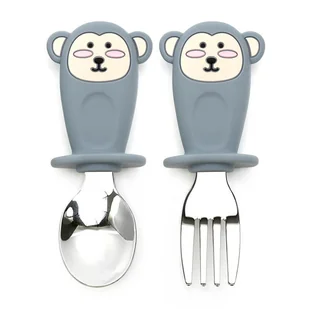 Pierwsze Sztućce Małpka Łyżeczka i Widelec [Kolor Beżowy]