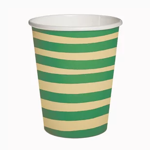 Kubeczki papierowe w zielono-żółte paski. Pojemność 0,25 l. W zestawie 10 sztuk.