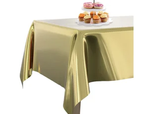Obrus z folii metalicznej w kolorze starego złota. Wymiary: 137 x 183 cm. Opakowanie 1 szt.