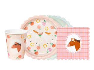 Zestaw papierowy z konikami. W komplecie: Kubeczki: - 220 ml - 12 szt. Talerzyki: - 18 cm - 12 szt. Serwetki: - 33 cm - 12 szt. Opakowanie: 36 szt.