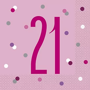 Serwetki papierowe - cyfra 21 - 16,5 cm - błyszczące różowe i srebrne urodziny - opakowanie 16 sztuk