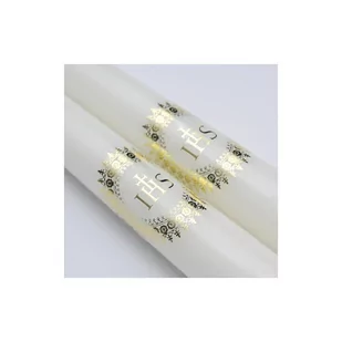 Eleganckie świece komunijne z połyskującą Hostią. Wyjątkowa propozycja, która pięknie udekoruje stół komunijny. Opis: przepiękne długie świece z komunijnym wzorem w postaci hostii; kolor biały czas palenia 7,5h Zastosowanie: doskonałe do dekoracji stołu pasują do wszystkich świeczników na proste świece Wymiary: długość ok.