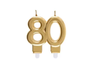 Świeczka cyferka "80" złota, idealna na osiemdziesiąte urodziny. Udana osiemdziesiątka. Wymiary: 9 x 7,5 cm. Opakowanie: 1 szt.