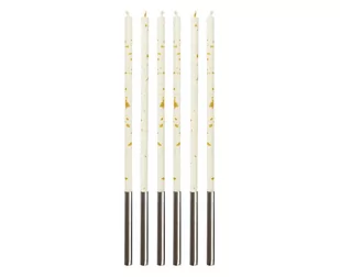 Świeczki B&C Milenium, białe Wysokość: 16,5 cm Szerokość: 0,5 cm Głębokość: 0,5 cm Kolor: biały / złoty Ilość: 6 szt. Kolekcja: Beauty & Charm Producent: Godan S.A.
