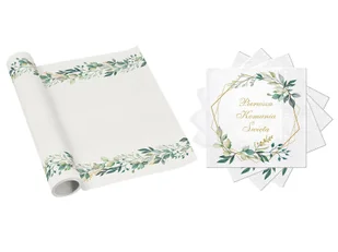 Zestaw dekoracji na stół na I Komunię Świętą w motywie listków.