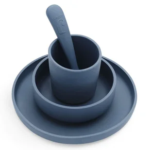 Jollein 4-częściowa zastawa stołowa, kolor indygo, silikonowa