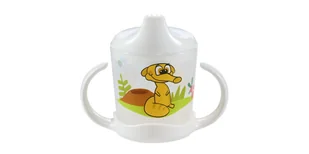 Kubeczek z dużymi uchwytami oraz silikonowym zaworkiem ułatwiającym ssanie napoju.