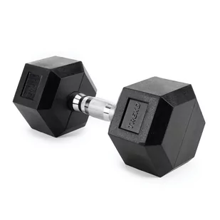 Hantel ogumowany TREXO Hex HXD100 10 kg 10 kg Hantel HEX marki TREXO wymiarach 34,5 x 14 cm i wadze wynoszącej 10 kg to sprzęt, który znajdzie zastosowanie w domowej siłowni i profesjonalnym klubie fitness. Z jego pomocą wykonasz szereg różnorodnych ćwiczeń. Rozbudujesz mięśnie, wzmocnisz ciało i zgubisz zbędne kilogramy. Dzięki wykonaniu z wysokiej jakości materiałów posłuży przez długi czas. Tym co między innymi wyróżnia ten model obciążenia, jest jego sześciokątny kształt, który ma znaczną przewagę nad tradycyjnymi, okrągłymi hantlami.