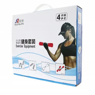 ZESTAW DO TRENINGU FITNESS Zestawu przyrządów treningowych zapewni Ci wszechstronny trening, który nie tylko wzmocni Twoje ciało ale także zapewni dodatkowy bodziec dzięki któremu uda się zrzucić zbędne kilogramy. Produkt idealny dla osób uprawiających intensywnie sport i tych, którzy rozpoczynają dopiero treningi. Jest to idealna forma aktywnego spędzania czasu dla całej rodziny. W zestawie: dwa hantle, gumowy ekspander, ściskacz, skakanka.