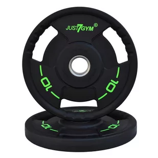 Profesjonalne Obciążenie Olimpijskie Poliuretanowe z Uchwytami Just7Gym, dostępne w obciążeniach od 1,25kg do 25kg. Obciążenia pokryte są ochronna warstwą poliuretanu, która gwarantuje komfort użytkowania, zabezpiecza sprzęt jak i podłogę przed ewentualnym uszkodzeniem. Talerze zaopatrzone są w uchwyty, dzięki czemu istnieje możliwość ćwiczeń z samymi obciążeniami zamiast sztangielek, również ułatwia to zakładanie jak i zdejmowanie obciążeń z gryfu. Powierzchnia talerzy łatwa w utrzymaniu w czystości.