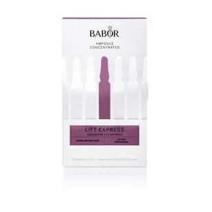 Delikatnie wklep serum w skore, a nastepnie naloz swoj zwykly krem nawilzajacy. / Intensywne serum w ampułkach o działaniu liftingującym i przeciwzmarszczkowym, zaprojektowane specjalnie dla skóry dojrzałej. Koncentraty w ampułkach Babor Lift Express Dodatek dla urody i zdrowia AMPOULE CONCENTRATES - Lift Express 7x2ml od BABOR to najwyższej jakości koncentrat przeciwstarzeniowych składników aktywnych zapewniający natychmiastowe wygładzenie skóry do 6 godzin. Składniki aktywne Lift Express redukują różnego rodzaju zmarszczki oraz poprawiają elastyczność i sprężystość skóry. Rezultatem jest natychmiastowo gładsza i młodziej wyglądająca skóra.