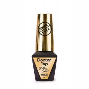 Rubber Doctor Top MollyLac kauczukowy samonaprawiający się top HEMA free 10 g Takiego topu jeszcze nie było! Doctor Top Rubber Edition to idealne połączenie efektu tafli szkła, kauczukowej formuły, pracującej razem z paznokciem oraz samoregenaracja płytkich uszkodzeń i zadrapań. Top posiada bloker UV co sprawia, że zapewnia odpowiednią ochronę przed żółknięciem koloru! Idealny do french manicure, babyboomer, wszelkich bieli i pasteli, a także kolorów, które chcesz, aby pozostały idealne przy dużej ekspozycji na słońce czy po solarium. Jego formuła została tak dobrana, aby nie pozwolić na przeniknięcie szkodliwych promieni przez lakiery hybrydowe! Autorski, nowatorski produkt pozwala bezpiecznie stylizować paznokcie, minimalizując ewentualność wystąpienia uczulenia dzięki formule HEMA/di-HEMA free . Jest to niezwykle ważne w przypadku produktów przezroczystych, które trudno jest zaaplikować w 100% idealnie. Pokochasz go od pierwszego użycia, a Twoje Klientki będą się cieszyć nieskazitelnym blaskiem paznokci przez bardzo długi czas.
