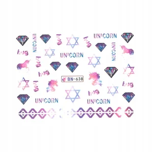Naklejki Wodne Bn-638 Unicorn - Do Zdobień Na Lakier Hybrydowy I Klasyczny, Żel Uv I Akryl