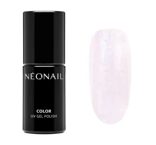 Lakier hybrydowy Neonail Glimmering Mist to biały odcień z multikolorowymi drobinkami, oferujący półtransparentne krycie. Trwały manicure utrzymuje się aż do 21 dni!
