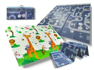Mata piankowa XPE edukacyjna dwustronna składana dla dzieci duża 200x180 cm wzór droga i żyrafa