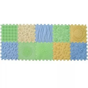 Ma także pozytywny wpływ na wczesny rozwój niemowląt, wspierając percepcję dotykową, wizualną, rozpoznawanie kolorów i kreatywność. Ortho Puzzle to urządzenie medyczne, które również przyczynia się do rozwoju fizycznego i psychologicznego dzieci, a powierzchnia mat odwzorowuje naturalne nierówności terenu, stymulując tym samym zmysły. Ten zestaw zawiera 10 elementów układanki do masażu o różnych motywach. Elementy układanki są zmywalne, można je czyścić wodą z mydłem i są wykonane z materiału hipoalergicznego. Materiał: 100% TPE. Zalecane od 9 miesiąca życia.