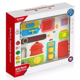 Interaktywna plansza do gry, która imituje kuchenne sprzęty i czynności dla najmłodszych.
