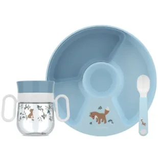 Dziecięcy zestaw obiadowy Mio 3-szt. Uczyń każdy posiłek Dziecka niezwykłą frajdą! Trzyczęściowy zestaw obiadowy dla dzieci Mepal Mio składa się z kubka treningowego, talerzyka dzielonego oraz łyżeczki, dzięki którym każdy Maluch w mig pozna prawdziwą przyjemność jedzenia. Mio to kolekcja zachwycająca wyjątkowym designem, łączącym prostotą elegancję z dziecięcym żywiołem, stworzona po to, by zachęcić do samodzielności. Idealna dla małych smakoszy! Kubek dziecięcy treningowy do nauki picia Mio 200 ml Kubek cechuje się solidną konstrukcją wykonaną z wysokiej jakości materiałów, wolnych od szkodliwego BPA, co zapewnia jego wytrzymałość oraz bezpieczeństwo użytkowania. Przystosowany dla dzieci już od 6.