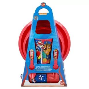 . W zestawie: talerz, kubek, miskę, butelkę i sztućce