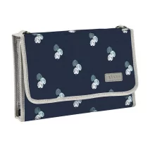 1 matą do przewijania z wyjmowanym ręcznikiem frotte wykonanym w 100% z bawełny organicznej z certyfikatem GOTS, 2 zapięciami do wózka, 2 zapinanymi na zamek kieszeniami z siatki, z których każda może pomieścić 2 pieluszki i małe produkty do pielęgnacji. 1 odpinany pasek na ramię do noszenia torby na ramieniu lub w ręku.