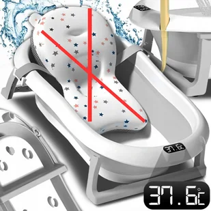 Wanienka składana z termometrem - BRAK PODUSZKI (WKŁADKI) W ZESTAWIE Specyfikacja techniczna Rozmiar po rozłożeniu: 75,5x45x20,5 cm Rozmiar po złożeniu: 75,5...